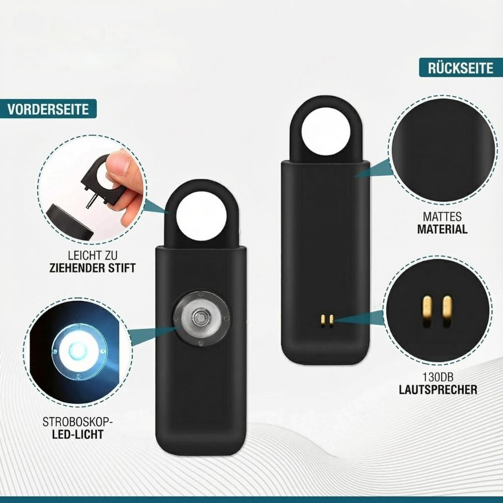 - Extrem lauter Alarm zur Abschreckung und Alarmierung